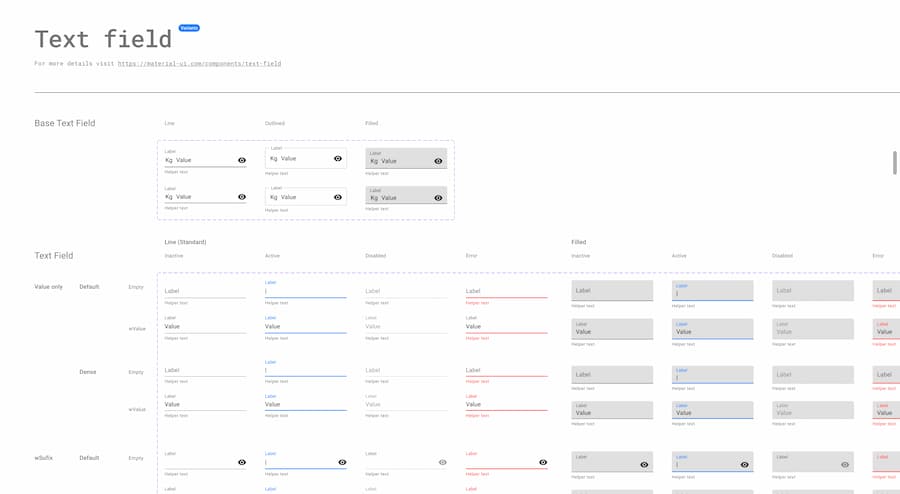 The Design kits contain many of the Material UI components with states, variations, colors, typography, and icons. We frequently update it to sync with the most up-to-date release.